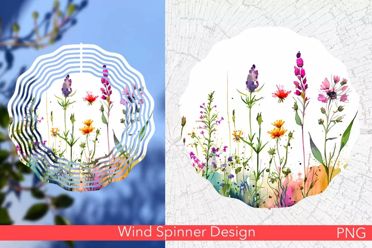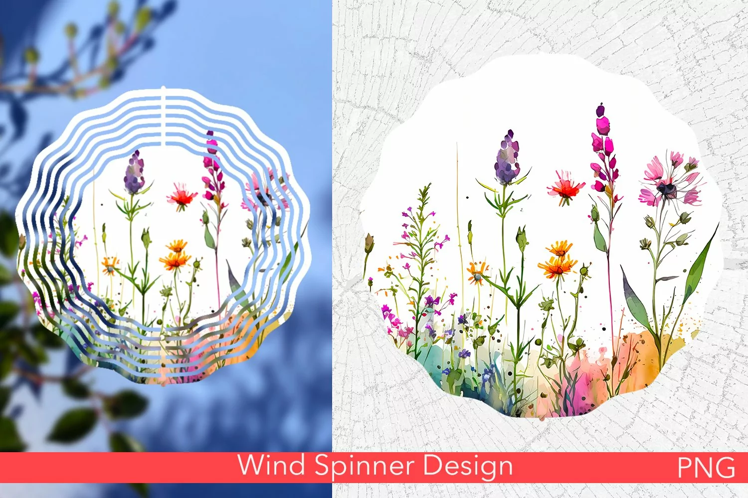 Watercolor Flowers Wind Spinner | Wildflowers PNG
