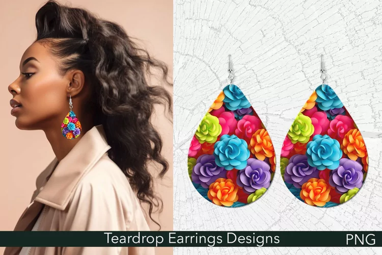 Floral Teardrop Earrings Sublimation | Colorful Blossoms PNG