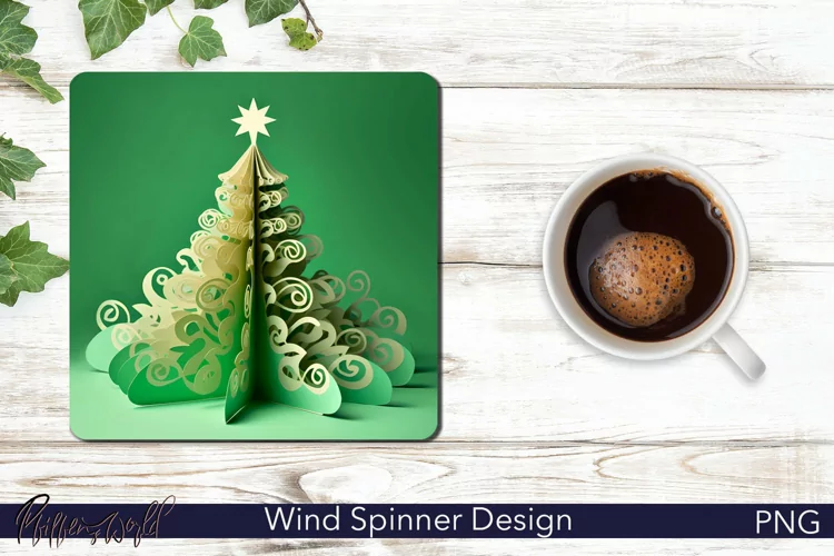 Christmas Tree Square Coaster | Paper Cut Effect Design