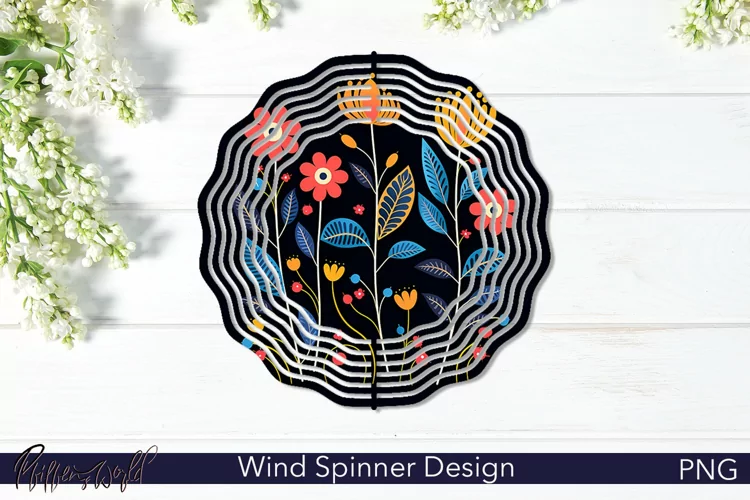 Colorful Flowers Wind Spinner | Floral PNG Design example image 1