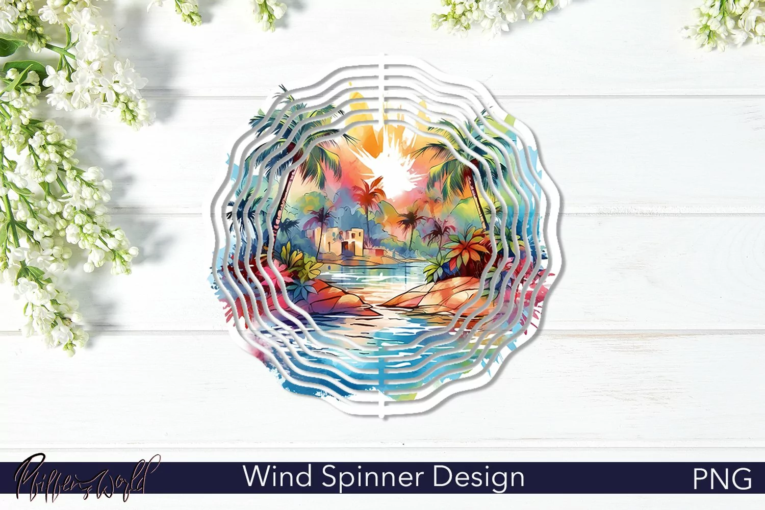 Tropical Island Beach Vibes Beach Lover Travel Design Round Sublimation Wind Spinner Spinner Template Garden Spinner Spinner Png Beach Wild Spinner