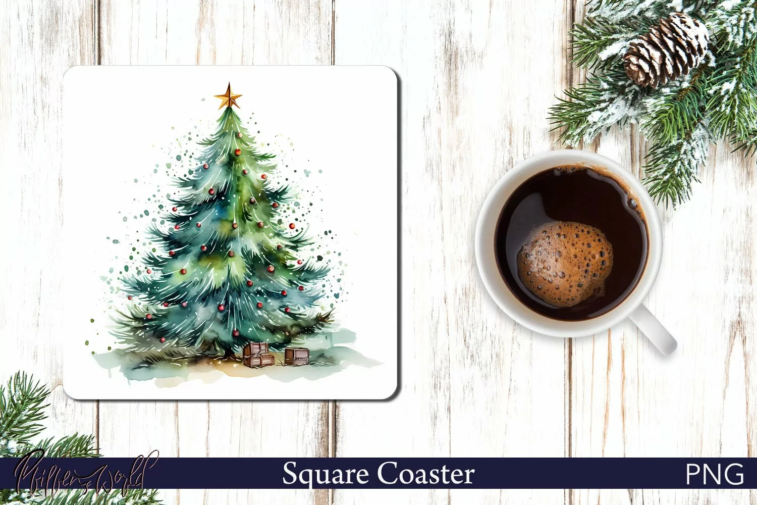 Christmas Tree Square Coaster | Watercolor Holiday Design example image 1