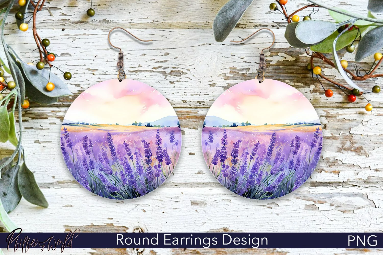 Similar Design Products to Round Earrings | Lavender Flowers Sublimation