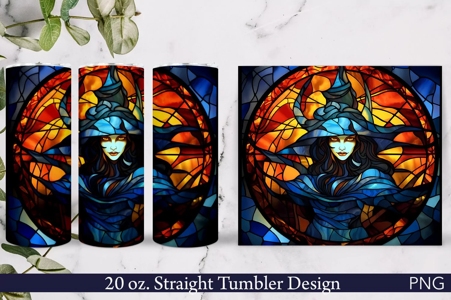 Halloween Sublimation Tumbler | Stained Glass Witch example image 1