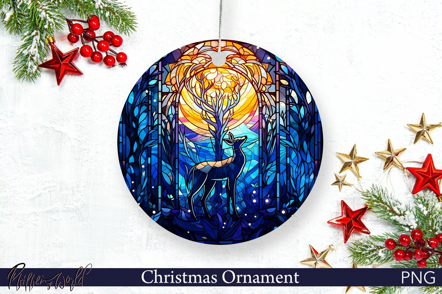 Christmas Ornament Design | Stained Glass Deer | Winter PNG example image 1