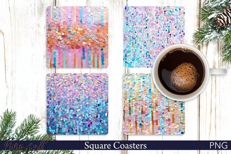 Sequins Square Coaster | Sparkling Pastel Colors