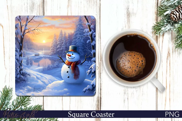 Christmas Square Coaster | Snowman PNG | Watercolor
