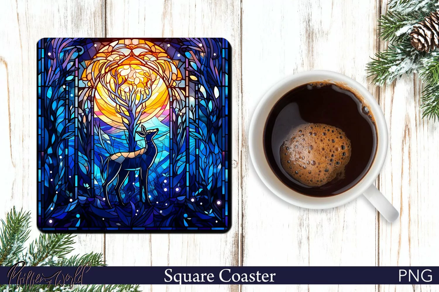 Christmas Square Coaster | Stained Glass Deer example image 1