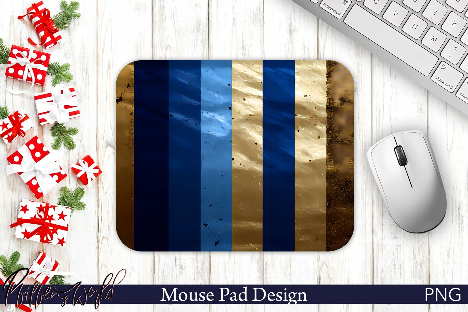 Holiday Mouse Pad | Sparkling Blue and Golden Stripes Design example image 1