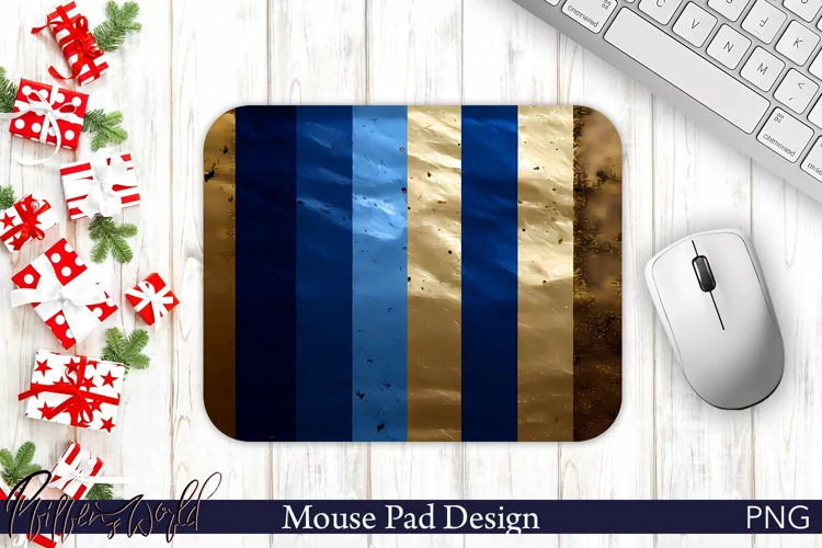 Holiday Mouse Pad | Sparkling Blue and Golden Stripes Design