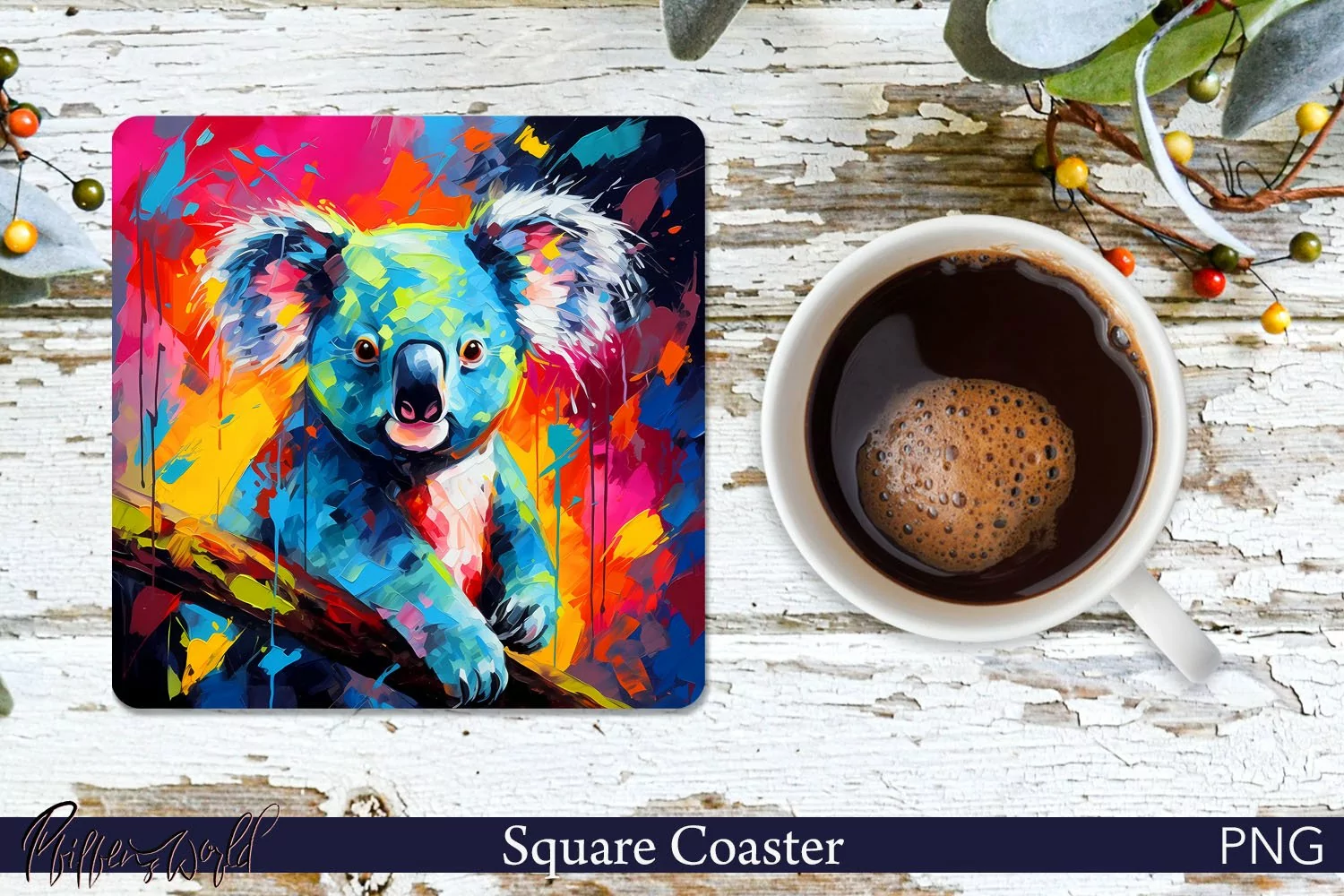 Koala Square Coaster | Wild Animals Design PNG example image 1