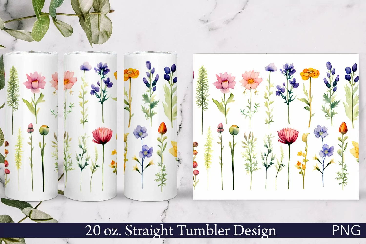 Floral Tumbler Wrap | 20 oz. | Wildflowers | Watercolor