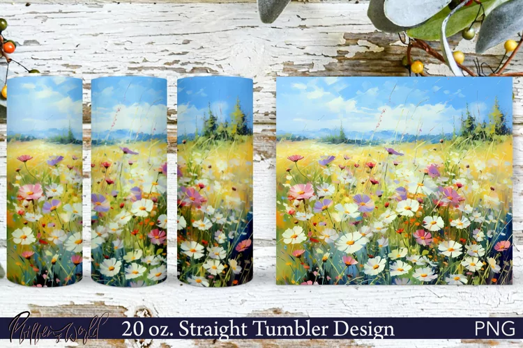 Daisy Flowers Tumbler Design Flower Meadow Skinny Tumbler Camomiles Tumbler Wrap Tumbler Sublimation Floral Tumbler Flowers Tumbler Daisies Meadow