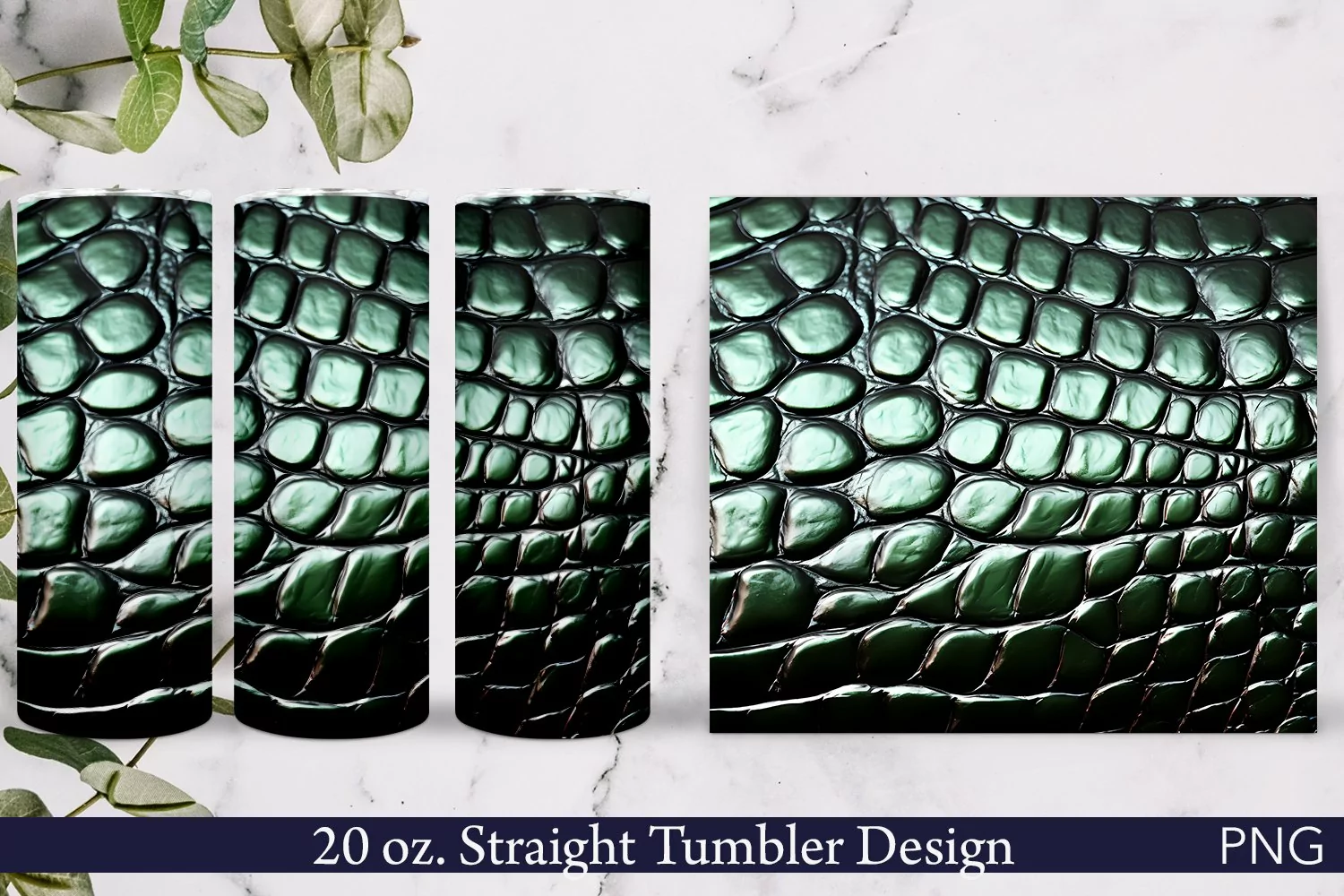 Green Leather Tumbler Wrap | 20 oz. | Crocodile Print PNG example image 1