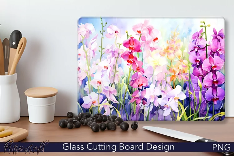 Similar Design Products to Glass Cutting Board Design | Watercolor Orchid