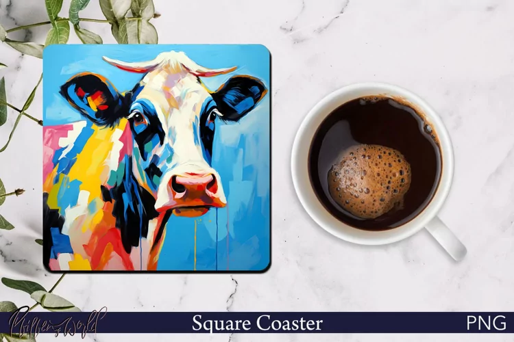 Cow Square Coaster | Farm Animal | Bright Colors PNG example image 1