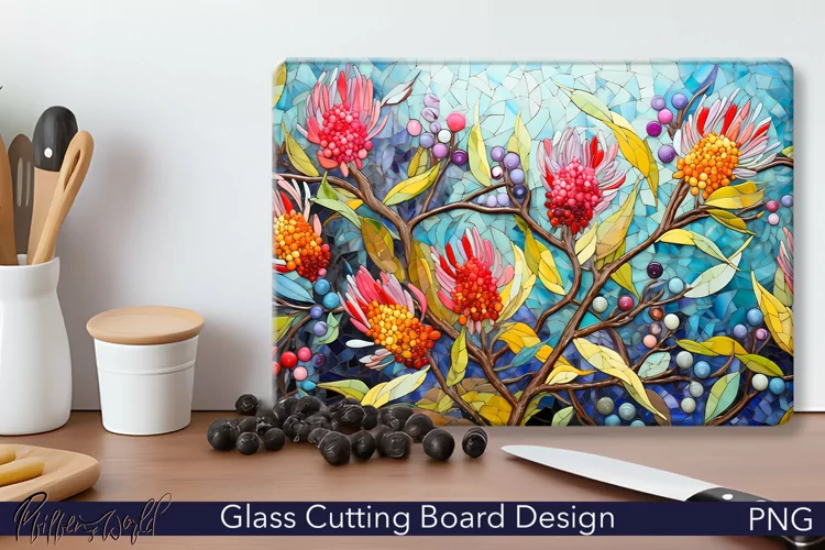 Glass Cutting Board Design | Mosaic Watercolor Design