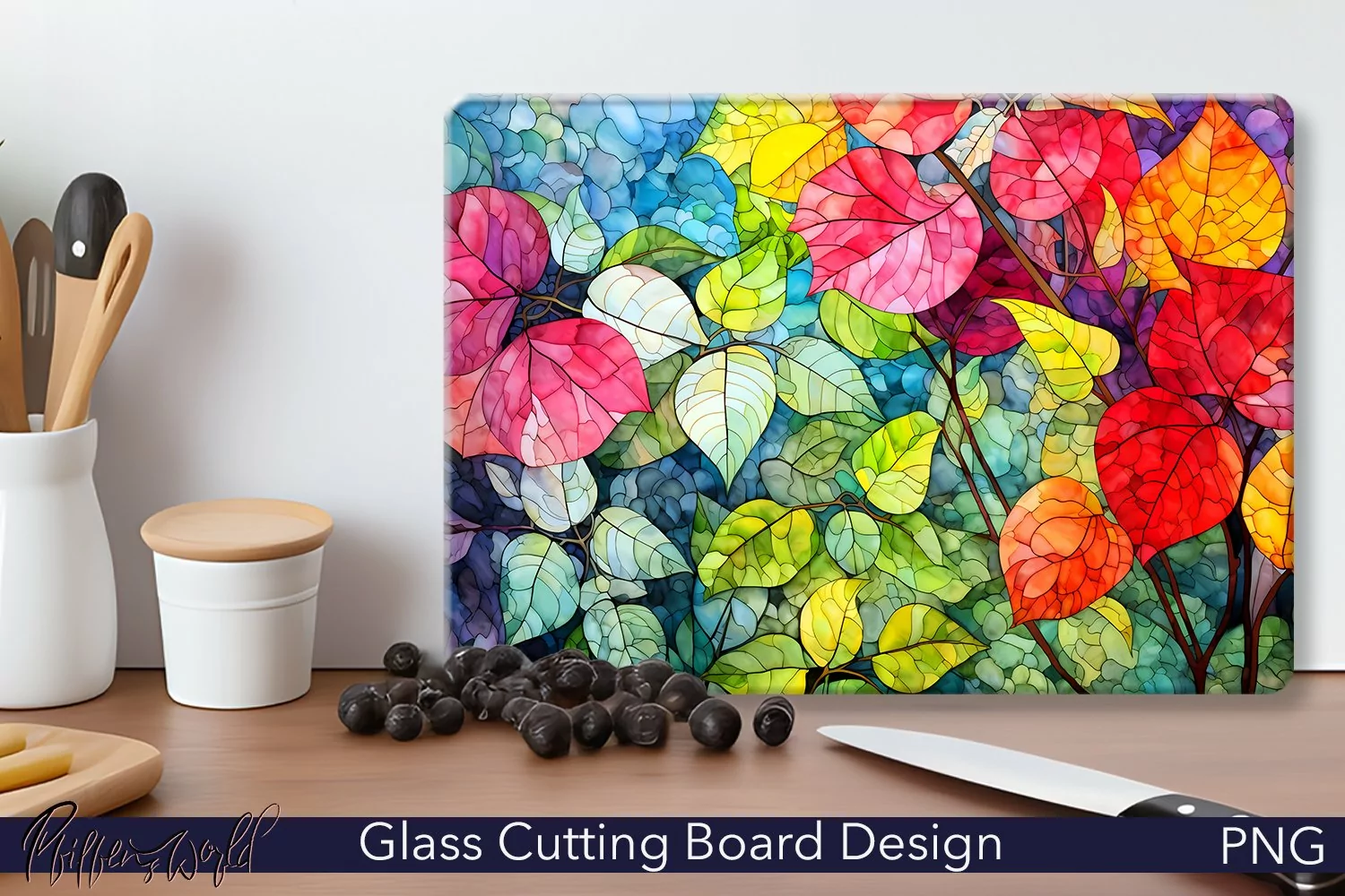 Glass Cutting Board Design | Colorful Leaves PNG example image 1
