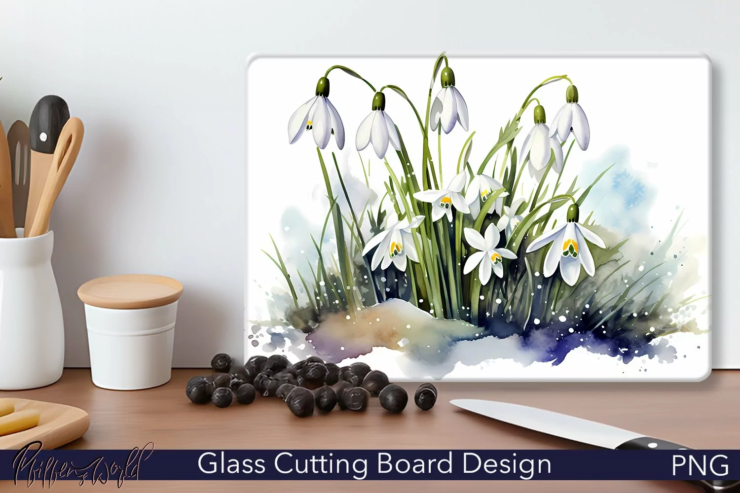 Glass Cutting Board Design | Snowdrop flowers Design example image 1