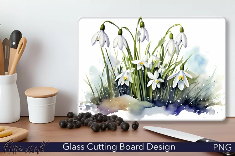 Glass Cutting Board Design | Snowdrop flowers Design