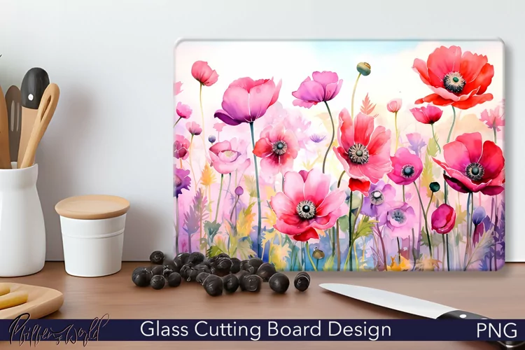 Spring Flowers Watercolor Flowers Kitchenware Chopping Board Sublimation Cutting Board Floral Cutting Board Glass Cutting Boards Anemone Meadow