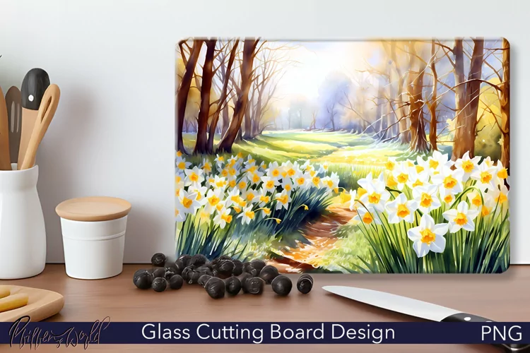 Glass Cutting Board Design | Narcissus meadow example image 1