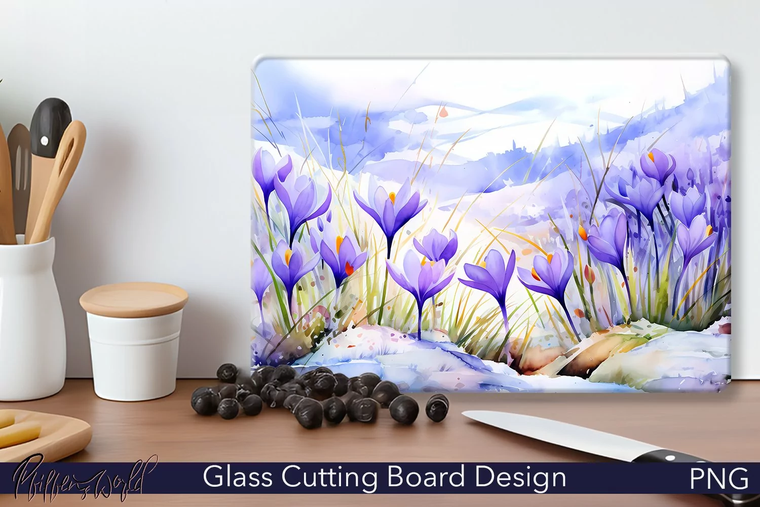 Spring Flowers Watercolor Flowers Kitchenware Chopping Board Sublimation Cutting Board Crocus Flowers Floral Cutting Board Glass Cutting Boards
