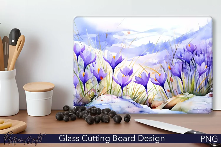 Glass Cutting Board Design | Crocus Flowers