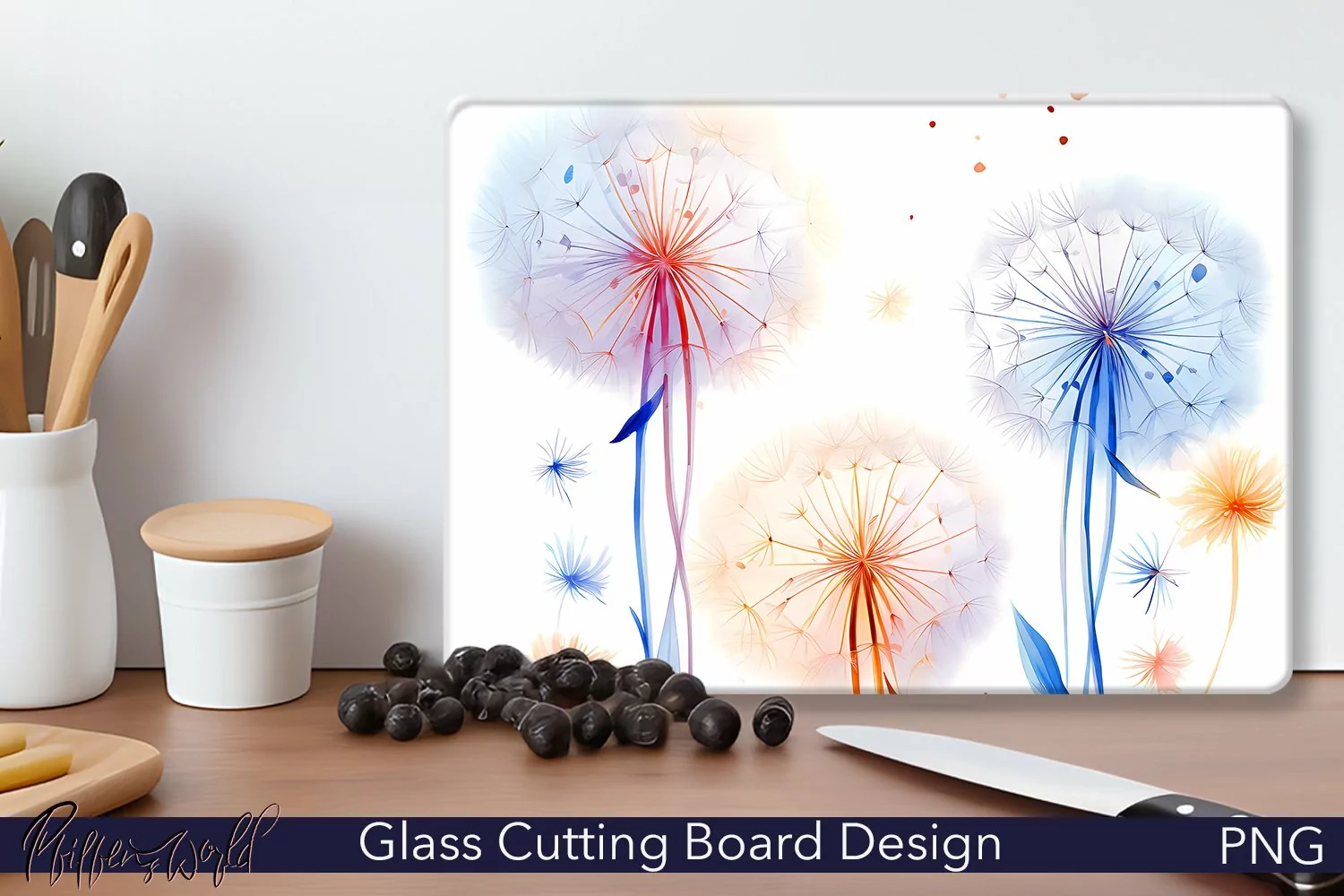 Glass Cutting Board Design | Dandelions