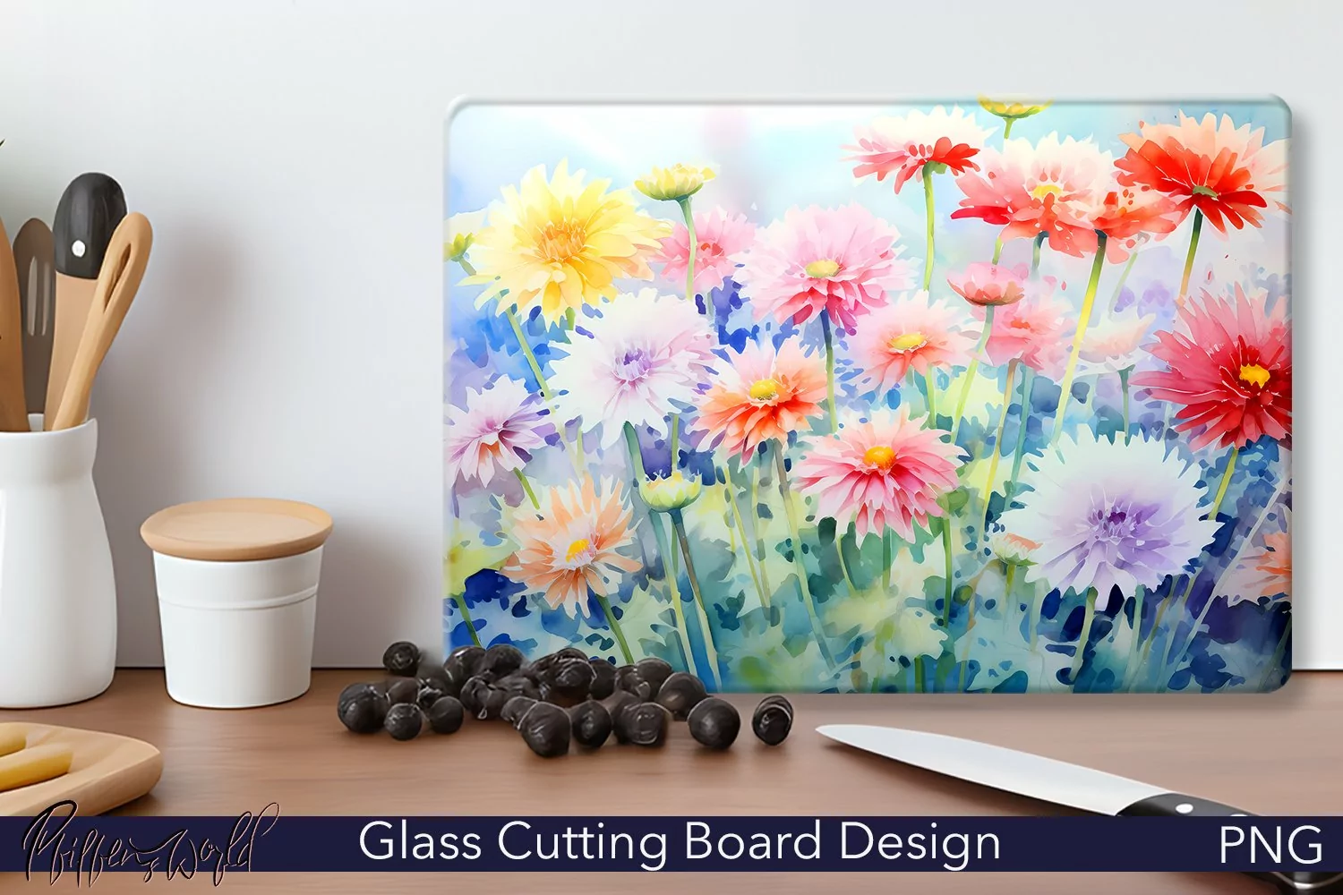 Spring Flowers Spring Flowers Watercolor Flowers Kitchenware Chopping Board Sublimation Cutting Board Floral Cutting Board Glass Cutting Boards