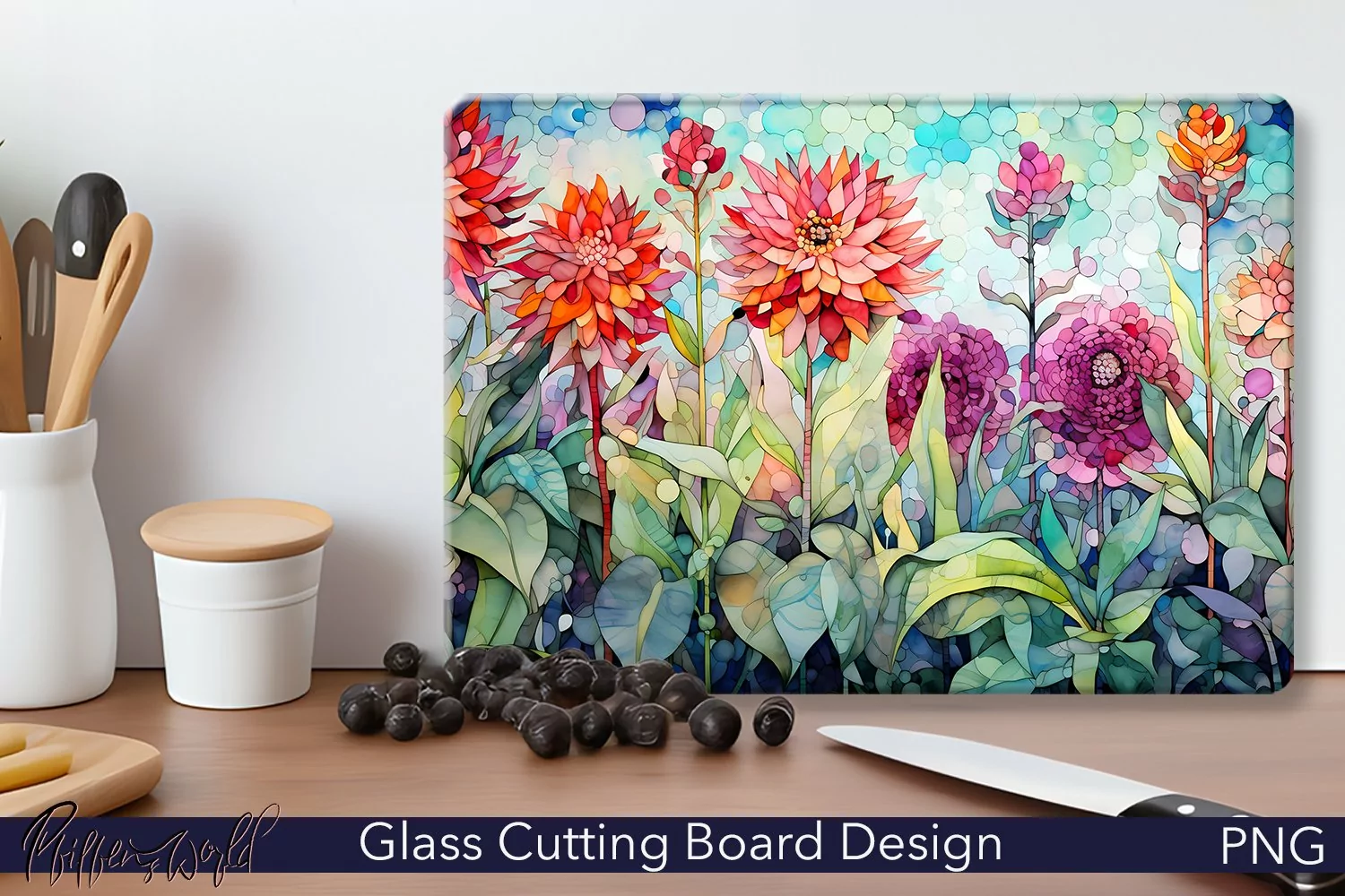 Spring Flowers Watercolor Flowers Kitchenware Chopping Board Sublimation Cutting Board Floral Cutting Board Flowers Meadow Glass Cutting Boards