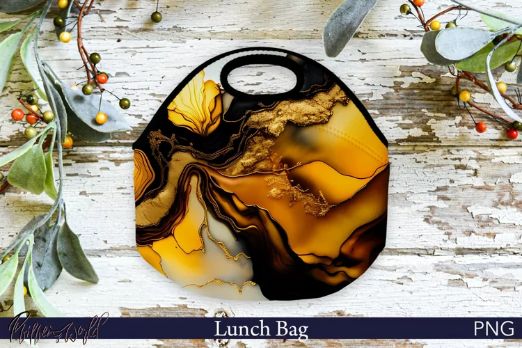 Lunch Bag Design | Alcohol Ink | Golden Design example image 1