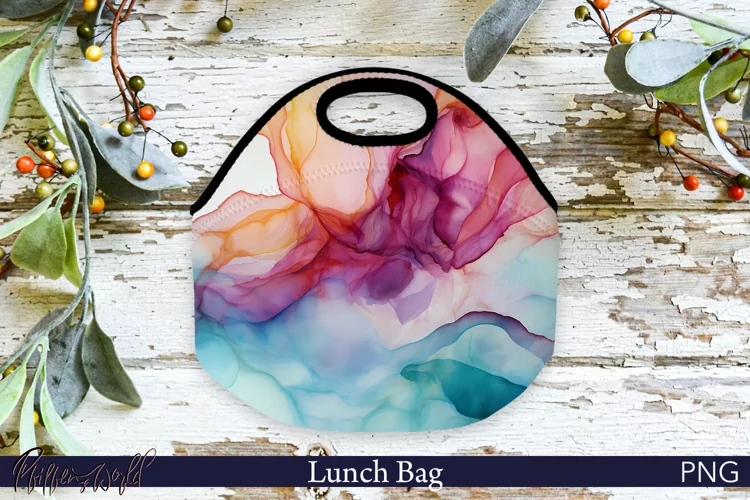Lunch Bag Design | Alcohol Ink | Colorful PNG