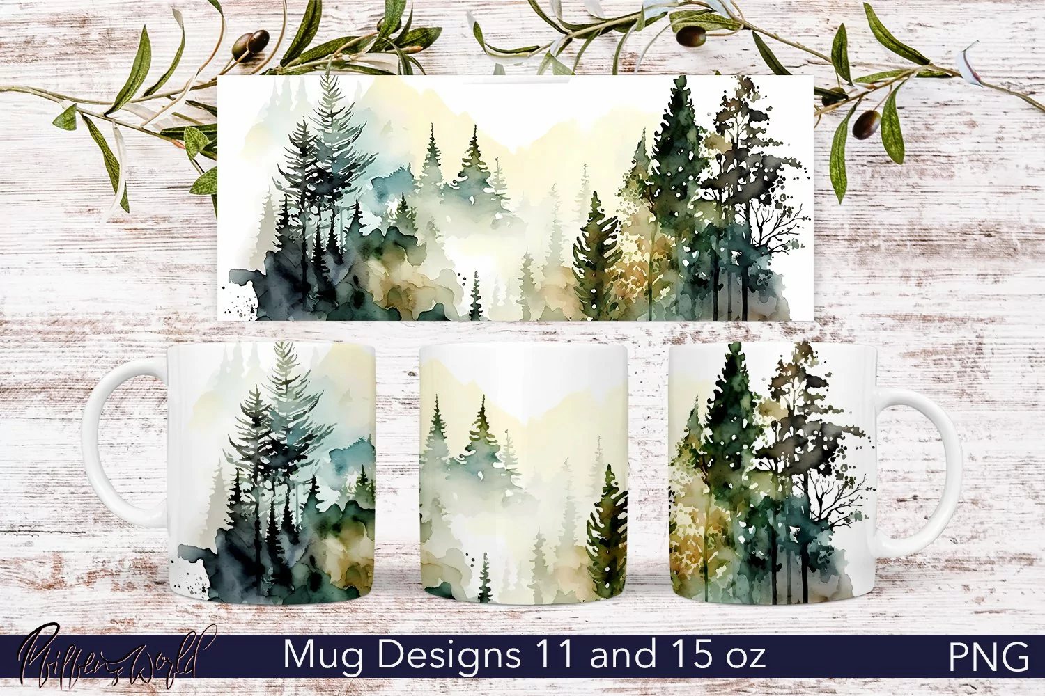 Similar Design Products to Floral Mug Wrap | Watercolor Forest