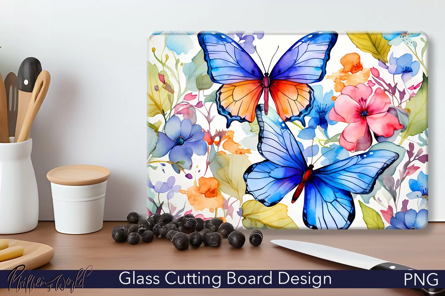 Glass Cutting Board Design | Watercolor Butterflies | Colors