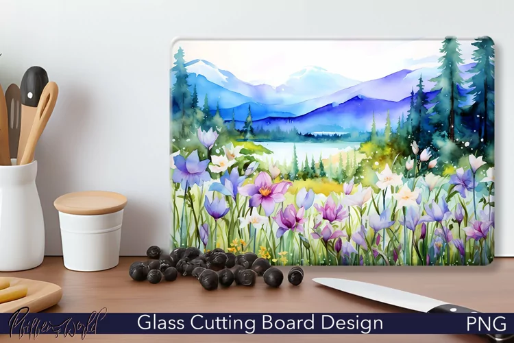 Glass Cutting Board Design | Flowers and Mountains