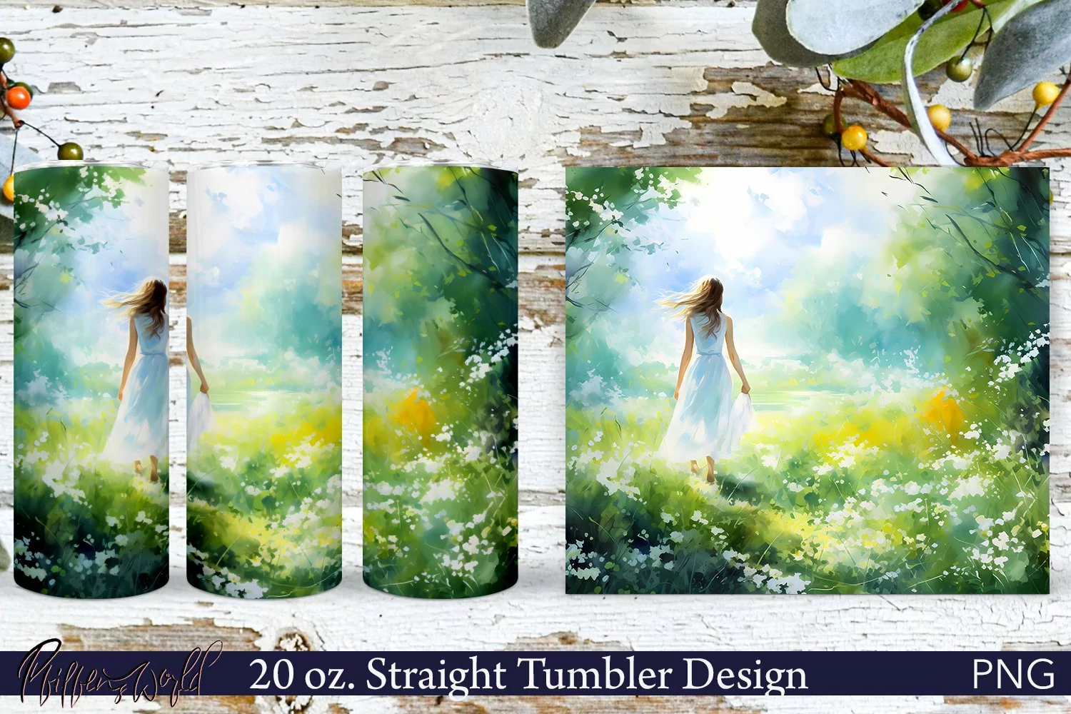 Floral Tumbler Wrap | 20 oz. | Spring Meadow adn Girl example image 1