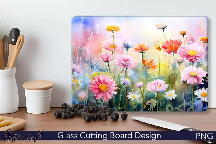 Glass Cutting Board Design | Colorful Spring Flowers Meadow