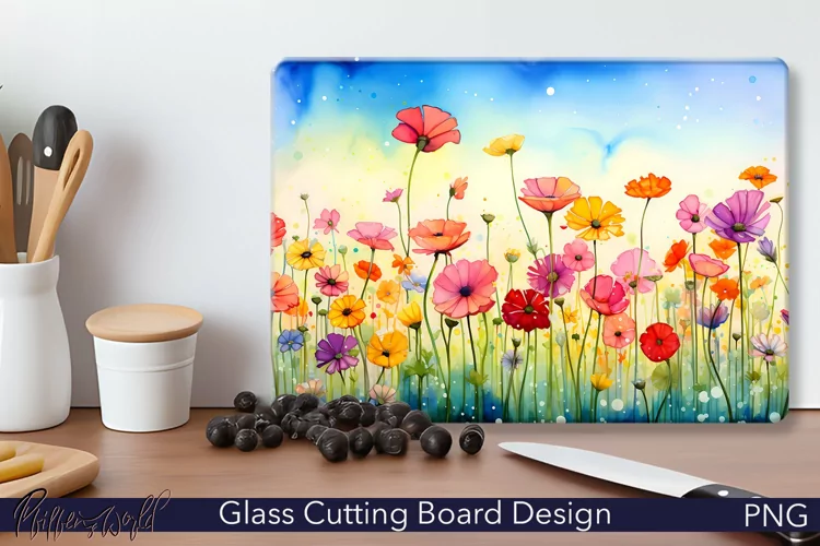 Glass Cutting Board Design | Colorful Gerbera Meadow