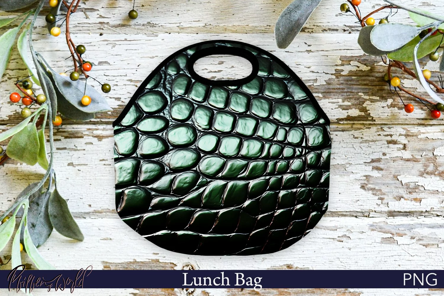 Lunch Bag Design | Green Leather PNG | Animal Sklin