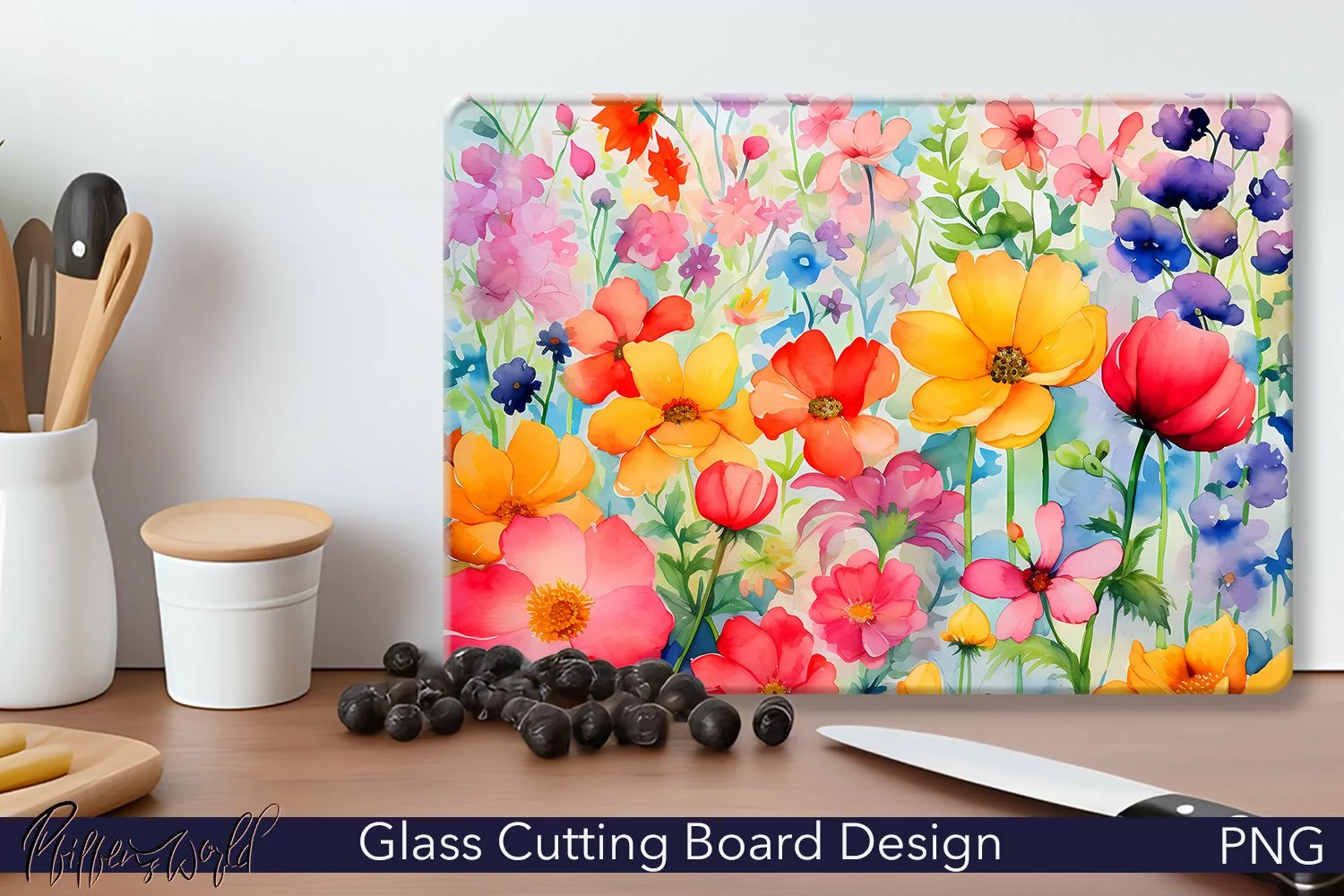 Glass Cutting Board Design | Colorful Spring PNG example image 1
