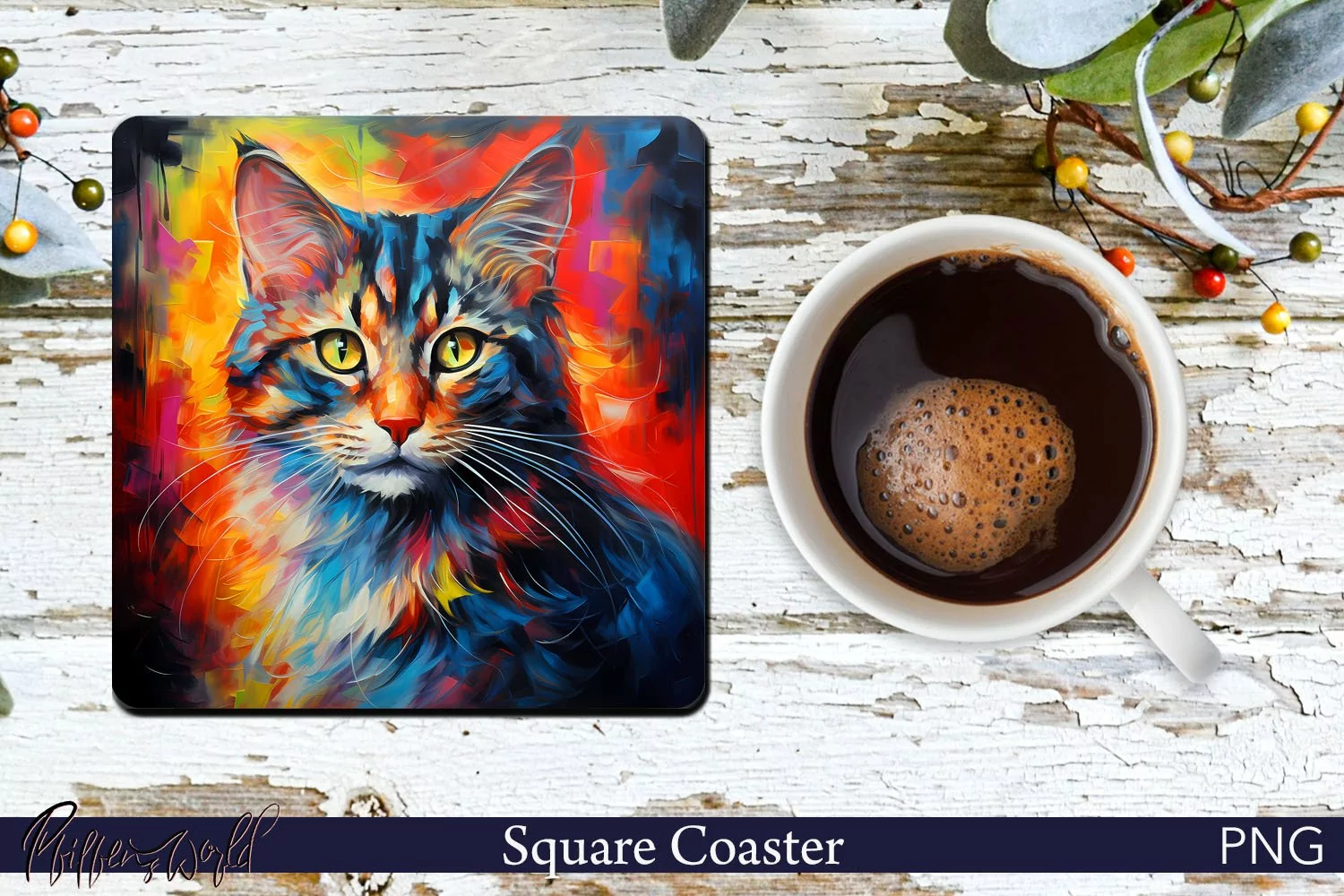 Cat Square Coaster | Farm Animal Design | Bright PNG example image 1