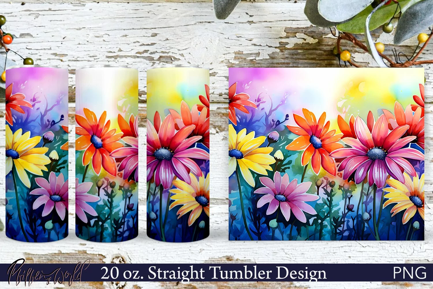 Floral Tumbler Wrap | 20 oz. | Spring Meadow | Colorful PNG example image 1
