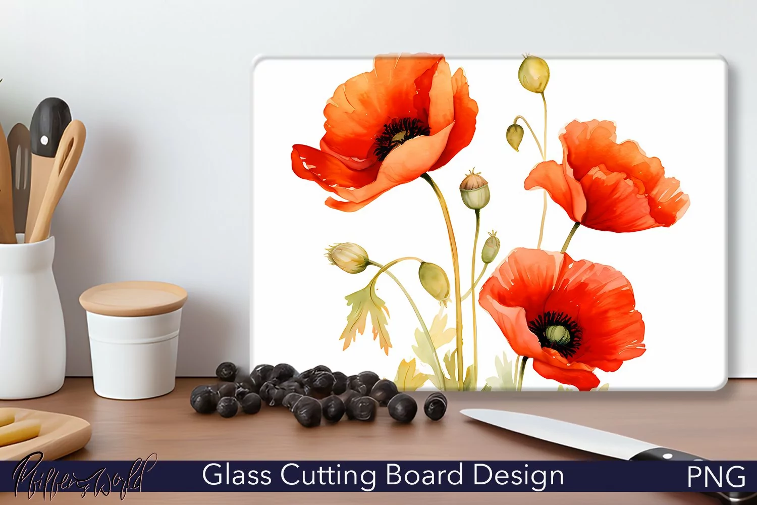 Spring Flowers Spring Flowers Watercolor Flowers Kitchenware Chopping Board Red Poppies Cutting Board Floral Cutting Board Glass Cutting Boards