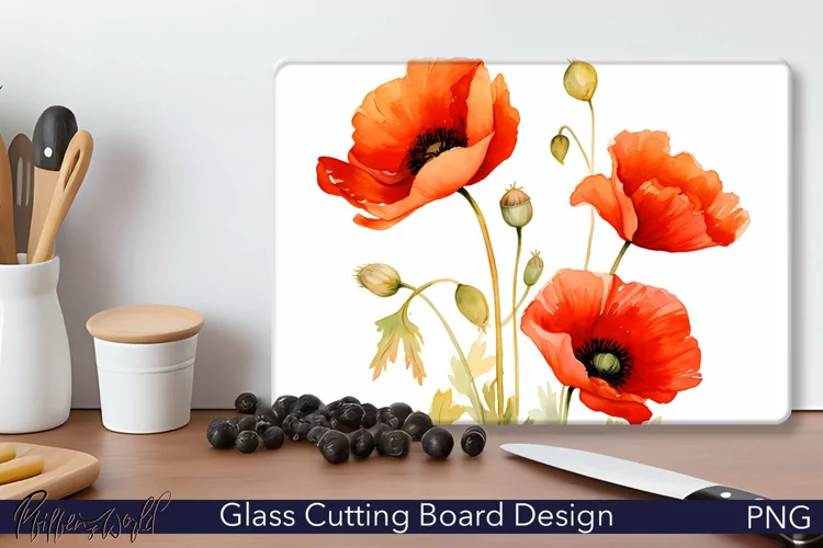 Glass Cutting Board Design | Colorful Spring | Red Poppies