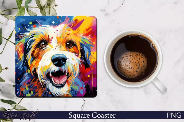 Dog Square Coaster | Farm Animal | Farmlife PNG example image 1