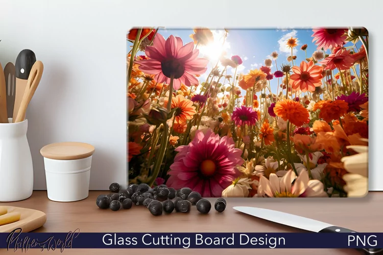 Glass Cutting Board Design | Summer Flowers PNG example image 1