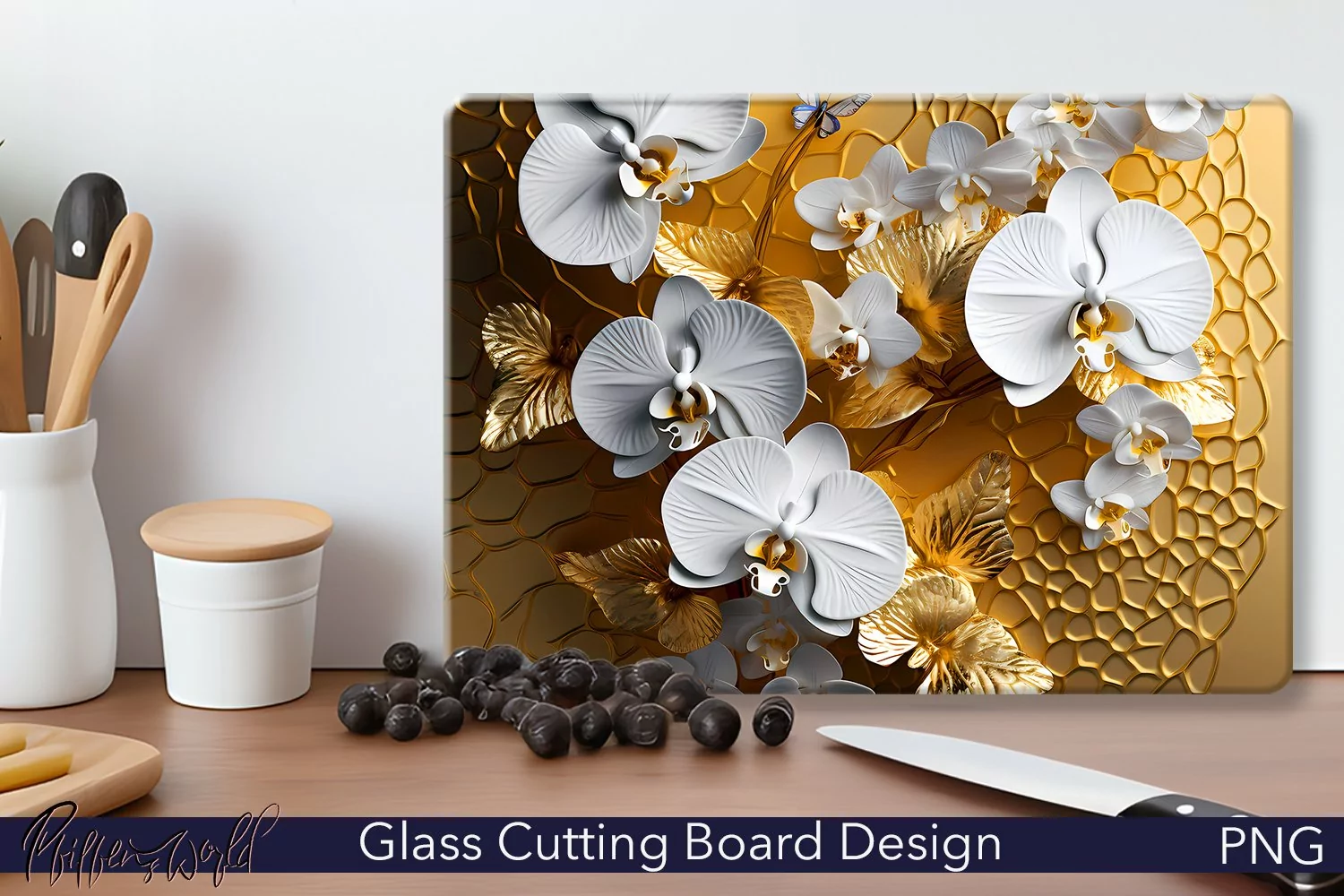 Glass Cutting Board Design | Butterflies and Flowers PNG