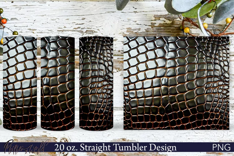 Similar Design Products to Leather Tumbler Wrap | 20 oz. | Crocodile Print PNG | Black
