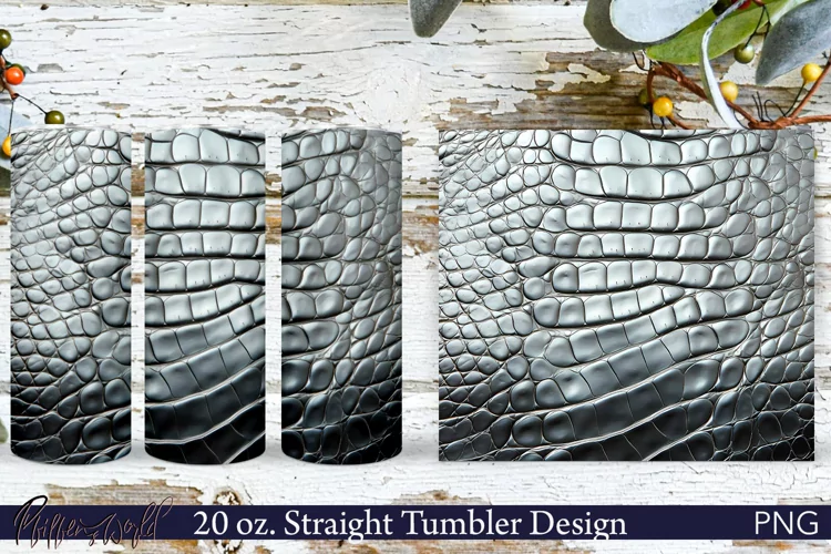 Leather Tumbler Wrap | 20 oz. | Crocodile Print PNG | Silver example image 1